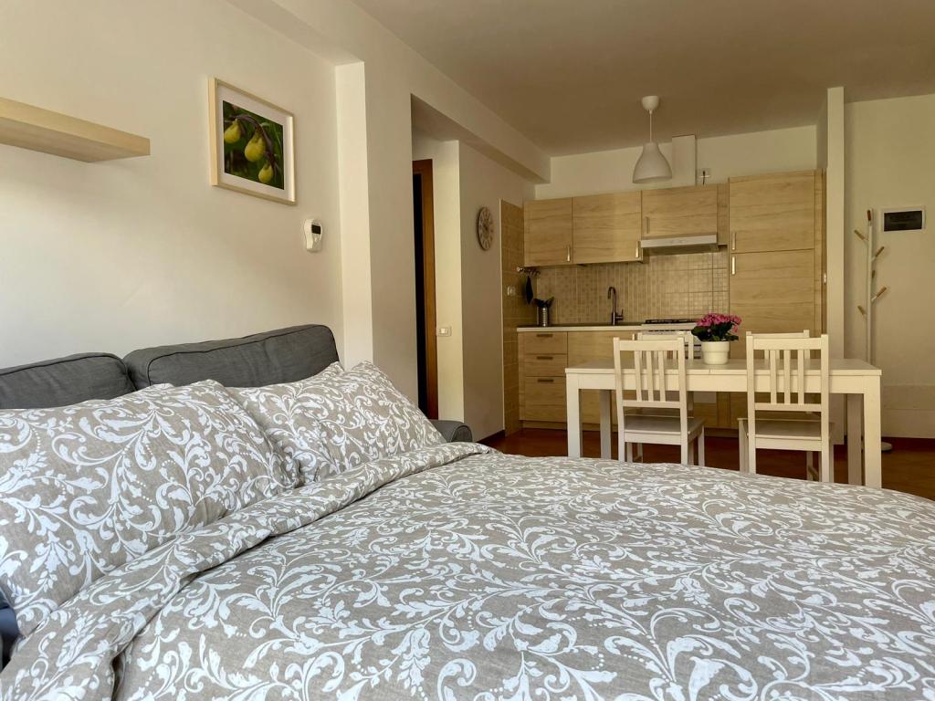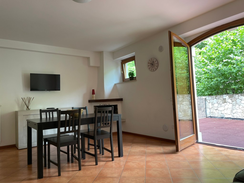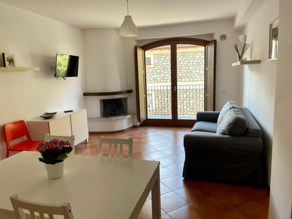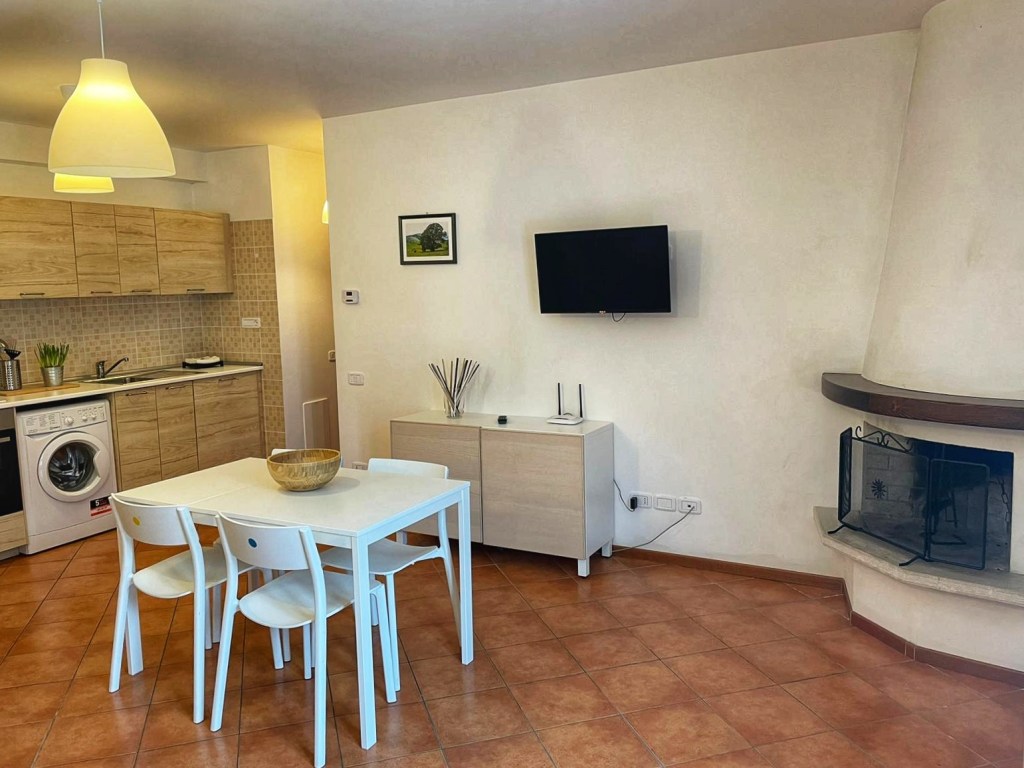 L’appartamento è composto da: una zona giorno con angolo cottura, caminetto e divano letto; una camera da letto matrimoniale ed un bagno con vasca. Può ospitare massimo 4 persone.