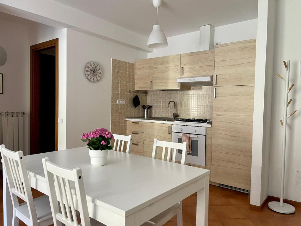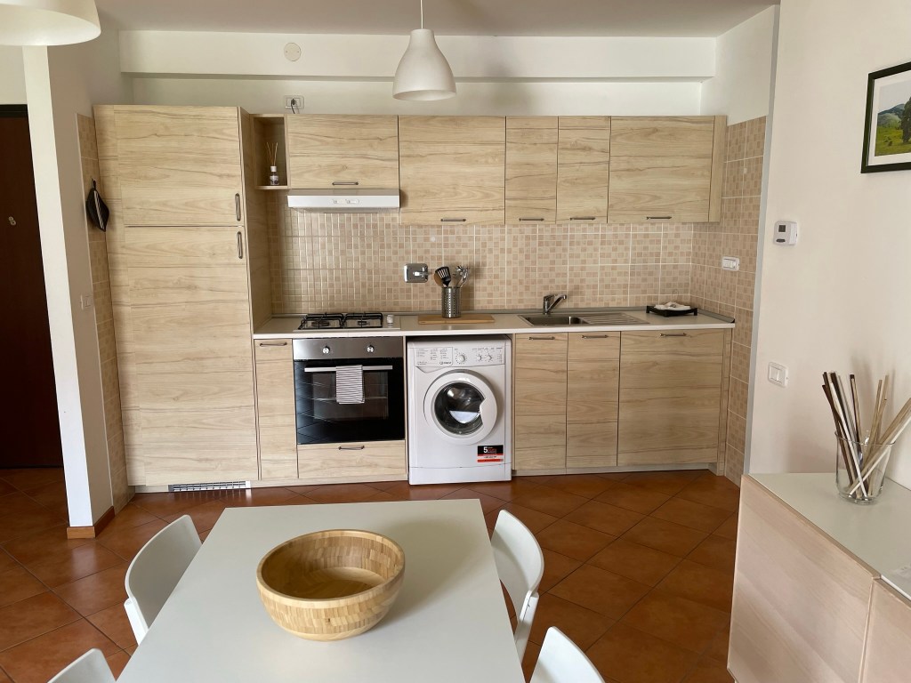 L’appartamento è composto da: una zona giorno con angolo cottura e divano letto; una camera con letto matrimoniale; un bagno con vasca; un ripostiglio ed infine una graziosa loggia coperta. Può ospitare massimo 4 persone.
